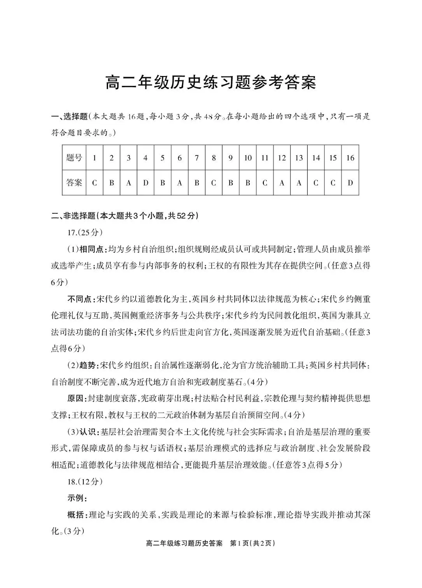 高二历史答案--四川省德阳市2025-2026学年高二上学期期末考试