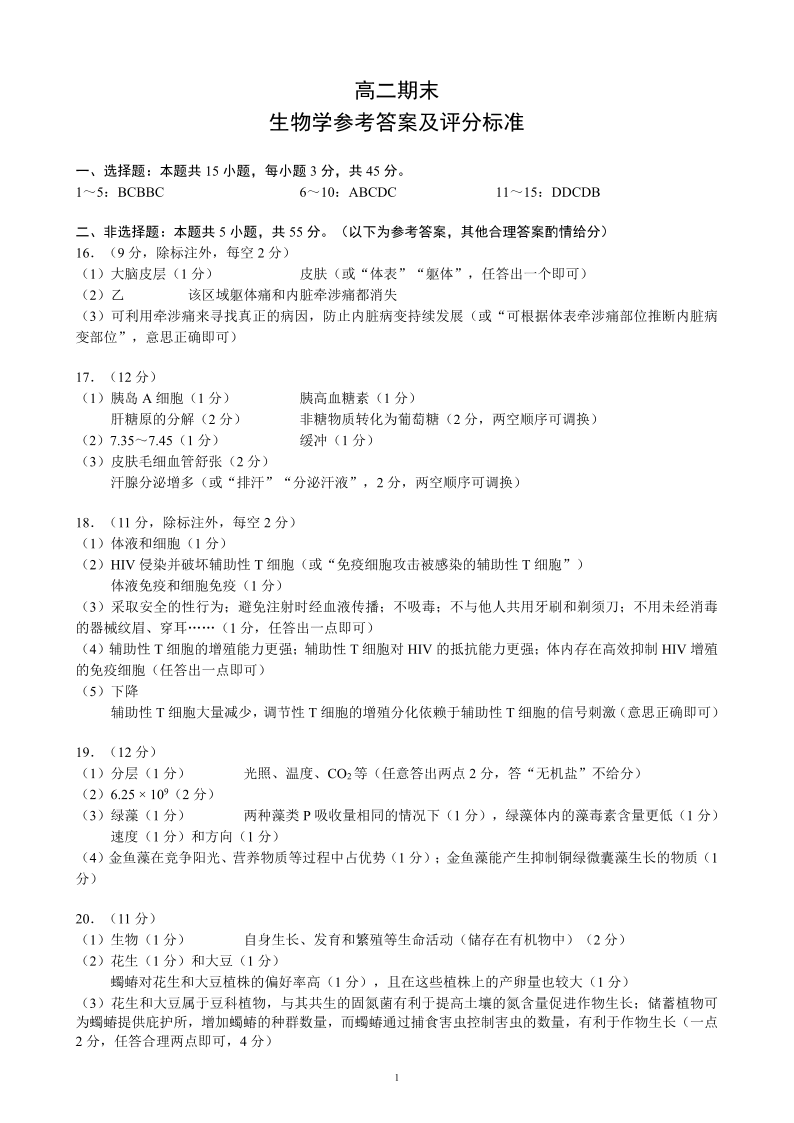 高二生物答案--四川省蓉城名校联盟2025-2026学年高二上学期期末考试
