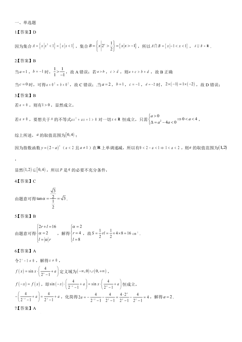 高一数学答案--黑龙江省哈尔滨市第六中学2025-2026学年高一上学期期末
