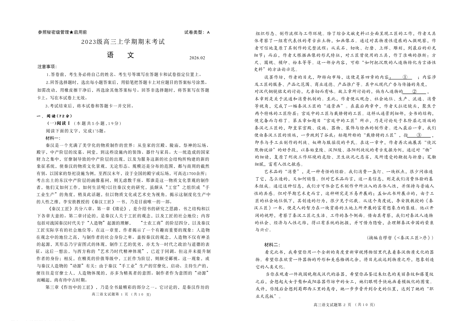 高三语文--山东省日照市2023级(2026届)高三年级上学期期末考试