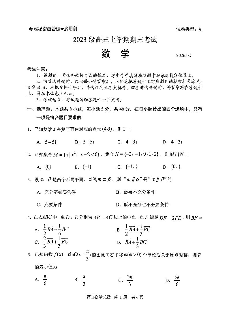 高三数学--山东省日照市2023级(2026届)高三年级上学期期末考试