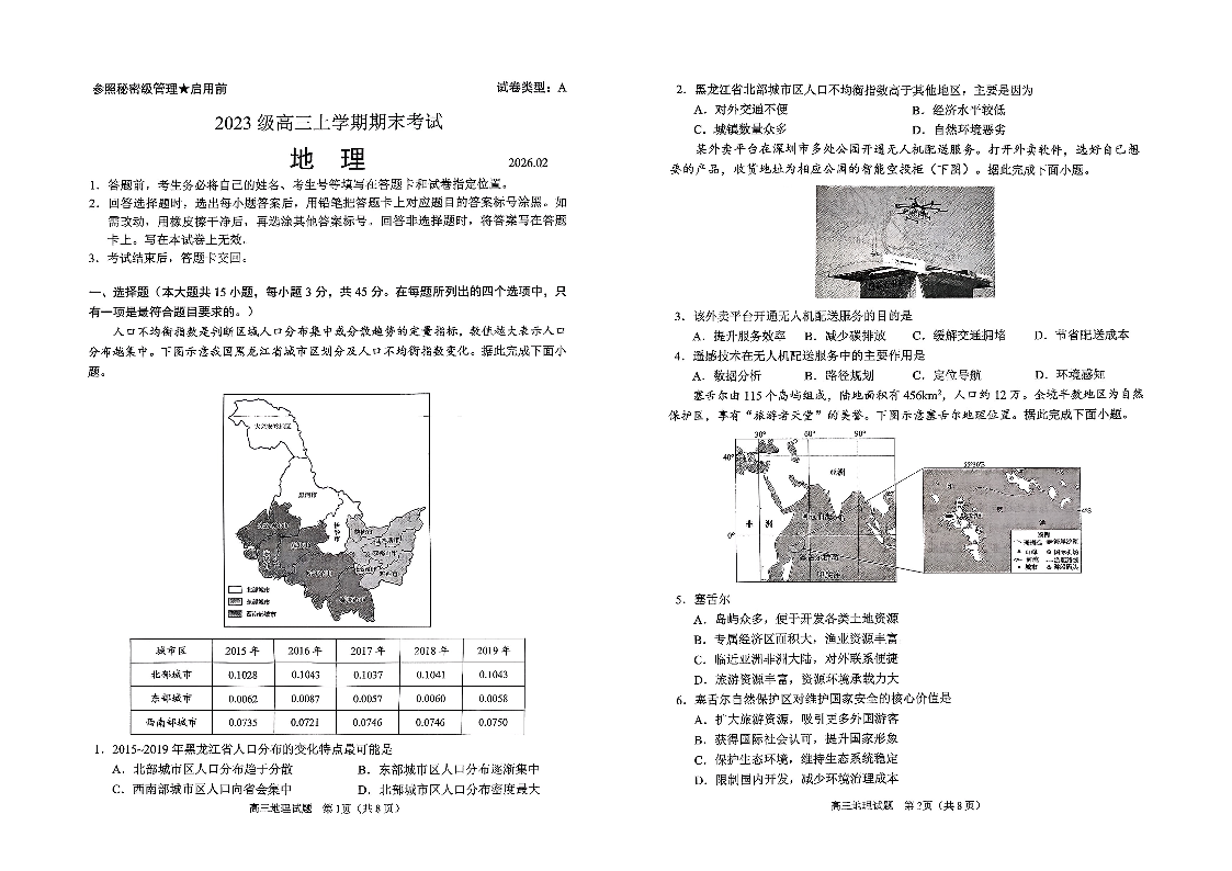 高三地理--山东省日照市2023级(2026届)高三年级上学期期末考试