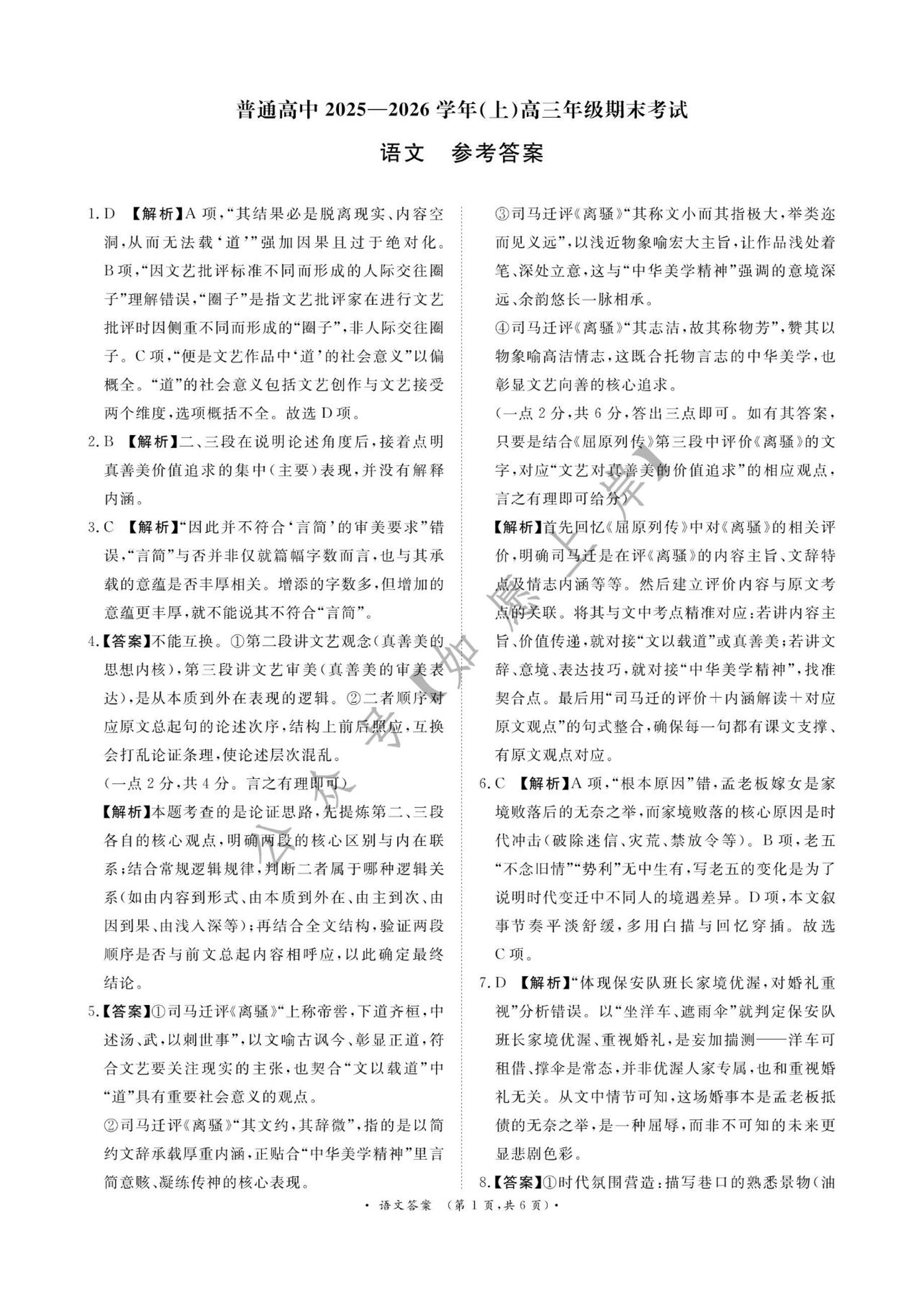高三语文答案--河南省青桐鸣大联考普通高中2026届高三上学期期末考试