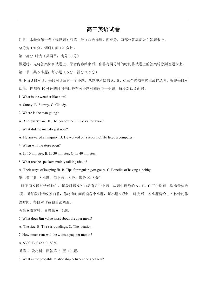高三英语+答案--江苏省苏州市2026届高三上学期期末考试(苏州零模)