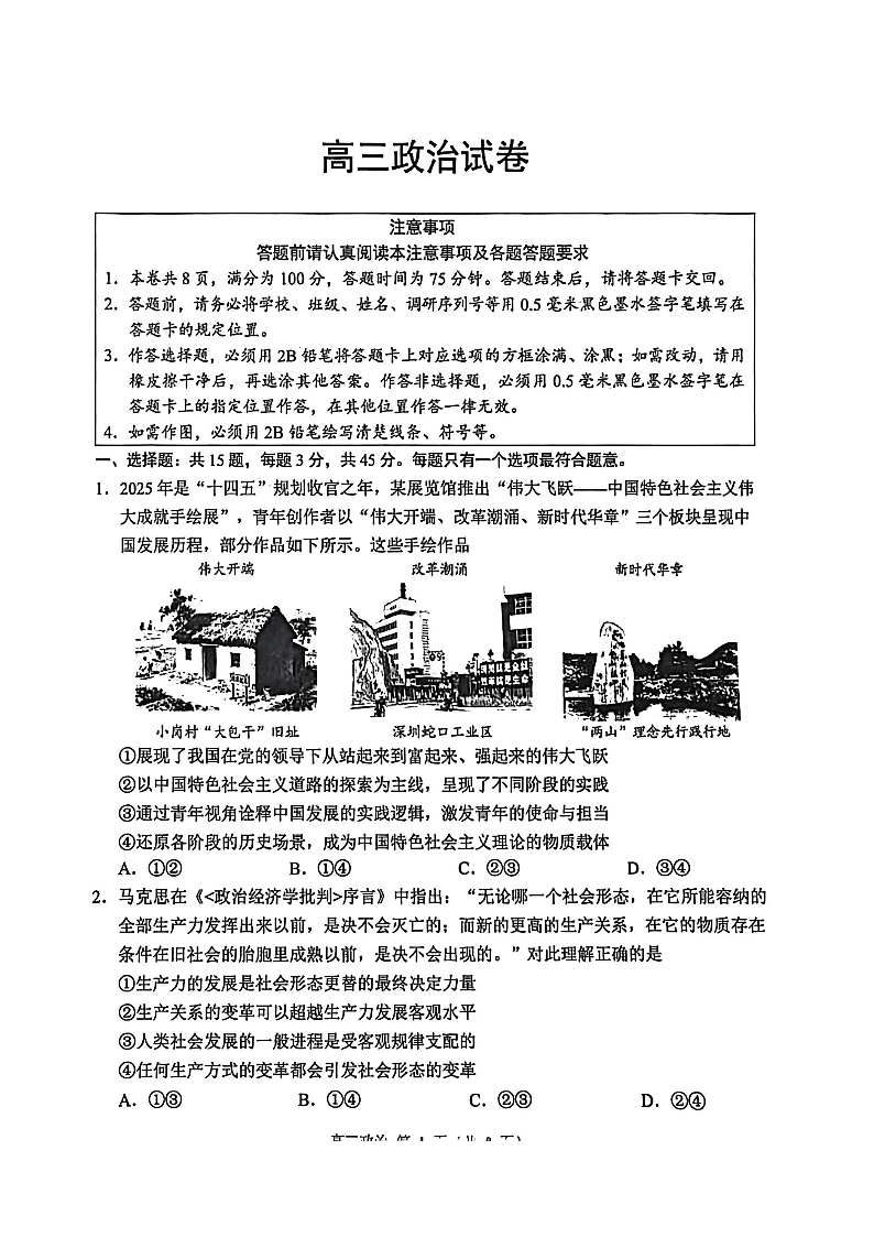 高三政治+答案--江苏省苏州市2026届高三上学期期末考试(苏州零模)