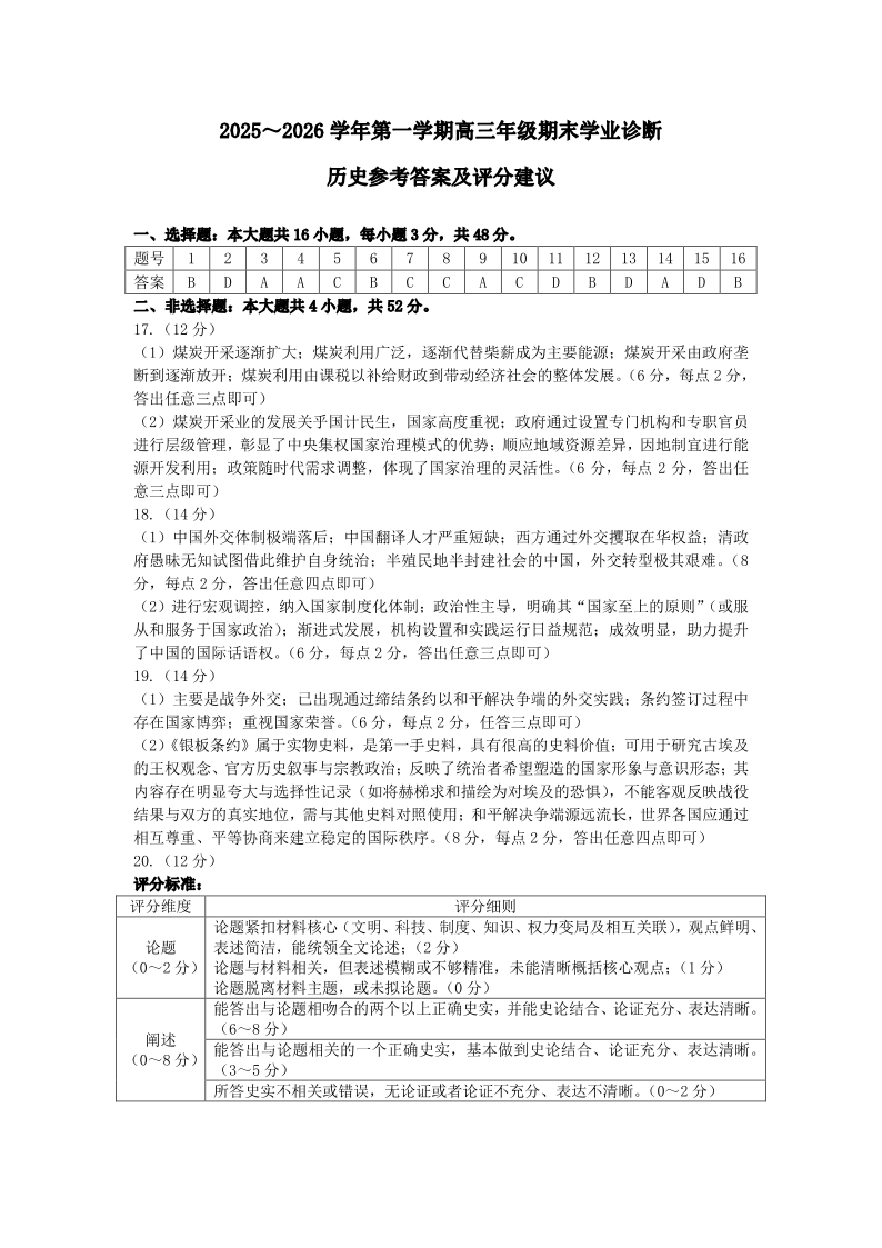 高三历史答案--山西省太原市2026届第一学期高三年级期末学业诊断