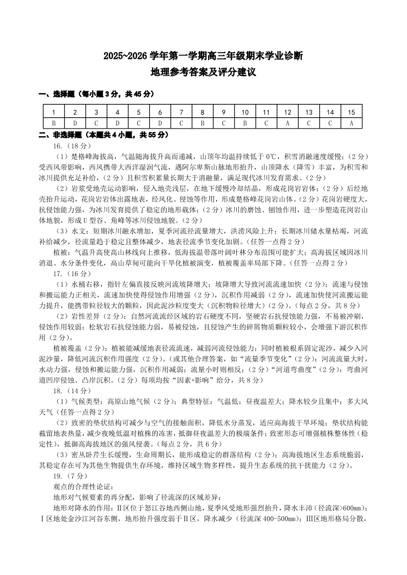 高三地理答案--山西省太原市2026届第一学期高三年级期末学业诊断