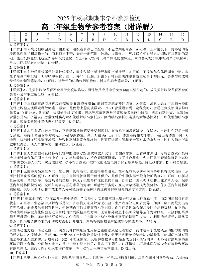 高二生物答案--广西贵港市部分高中2025-2026学年高二上学期期末学科素养检测