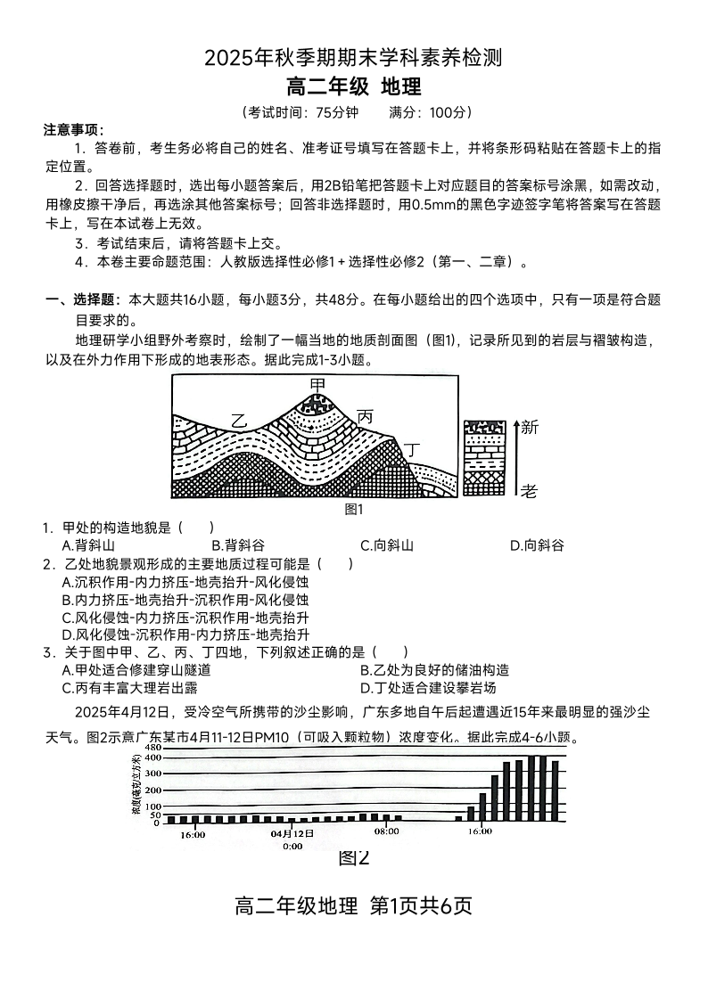 高二地理--广西贵港市部分高中2025-2026学年高二上学期期末学科素养检测