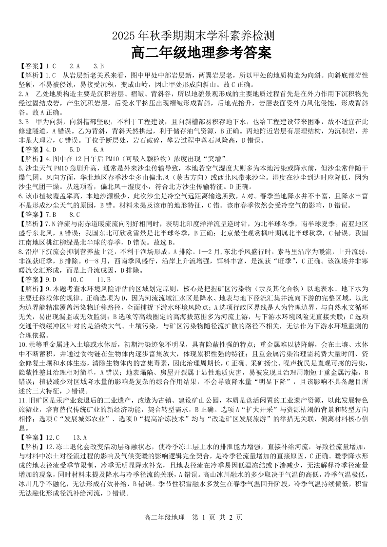 高二地理答案--广西贵港市部分高中2025-2026学年高二上学期期末学科素养检测