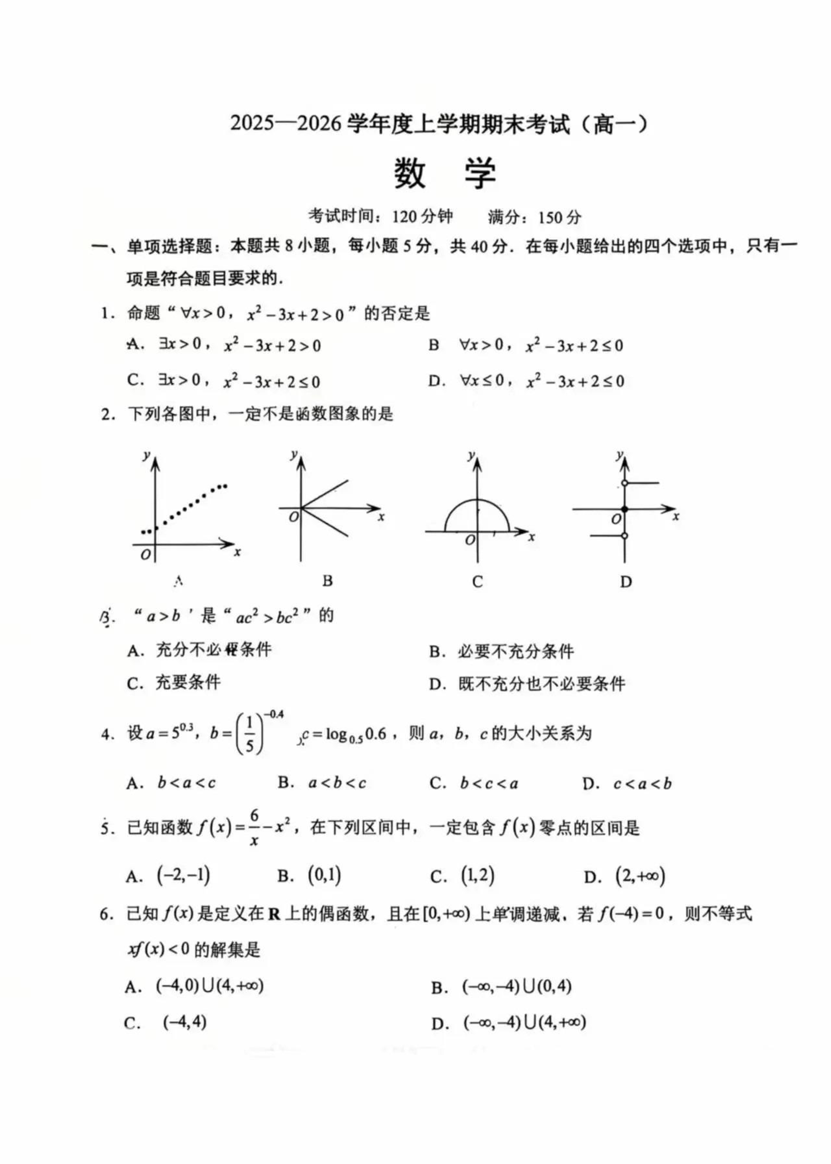 高一数学+答案--辽宁省鞍山市2025-2026学年高一上学期期末考试