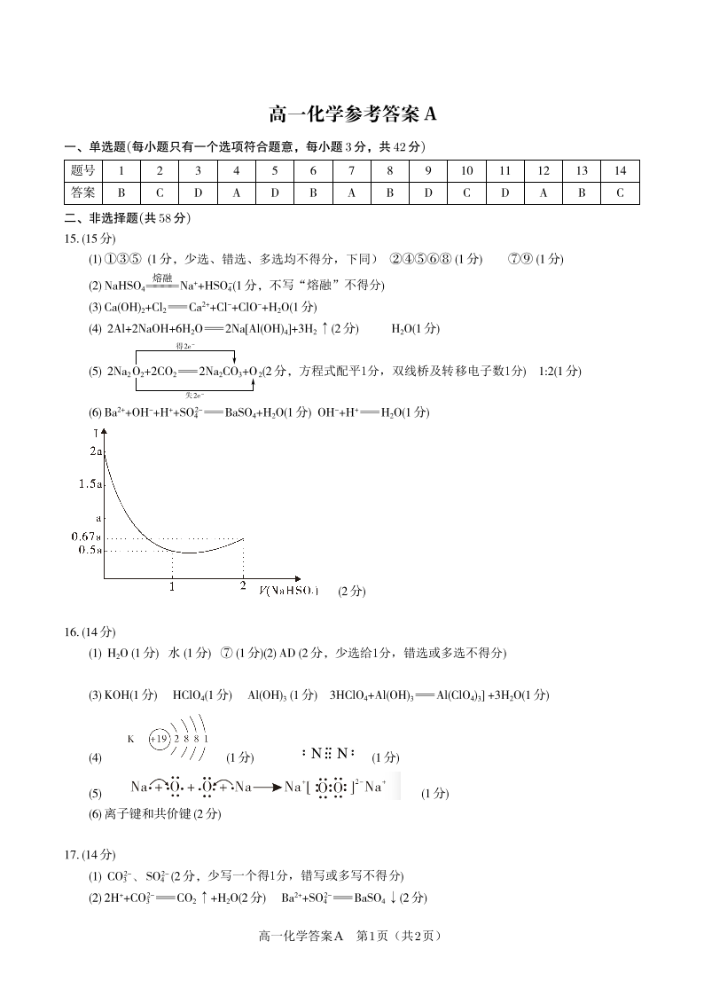 高一化学答案A--安徽省皖江名校联盟2025-2026学年上学期高一期末考试
