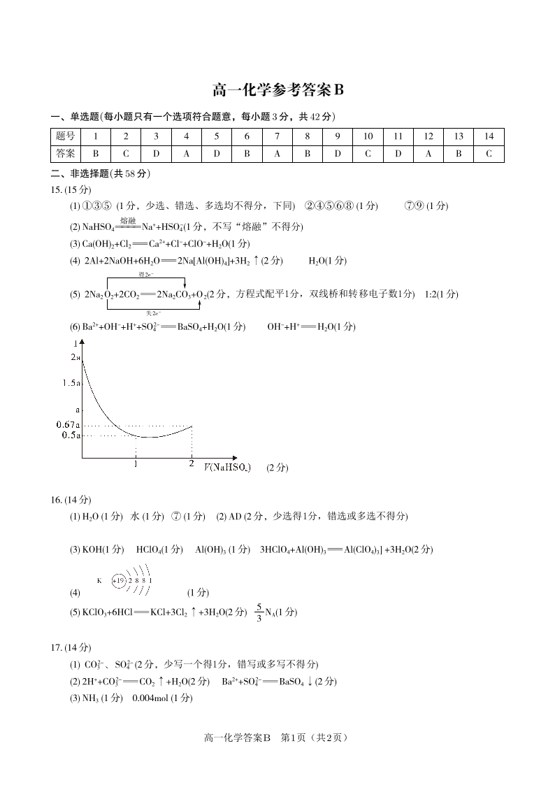 高一化学答案B--安徽省皖江名校联盟2025-2026学年上学期高一期末考试