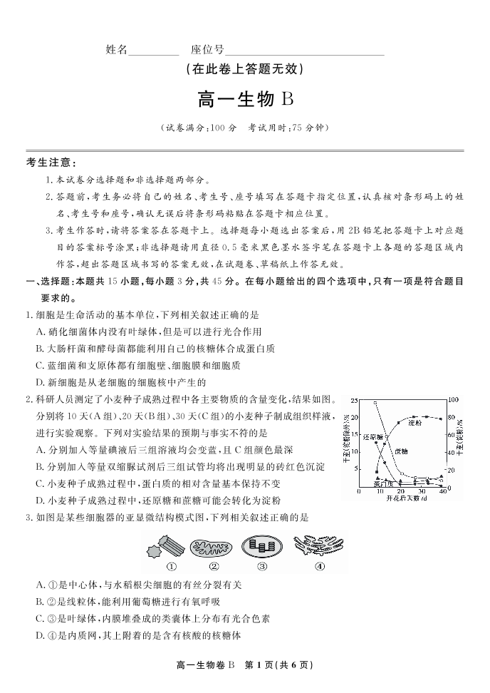 高一生物B--安徽省皖江名校联盟2025-2026学年上学期高一期末考试