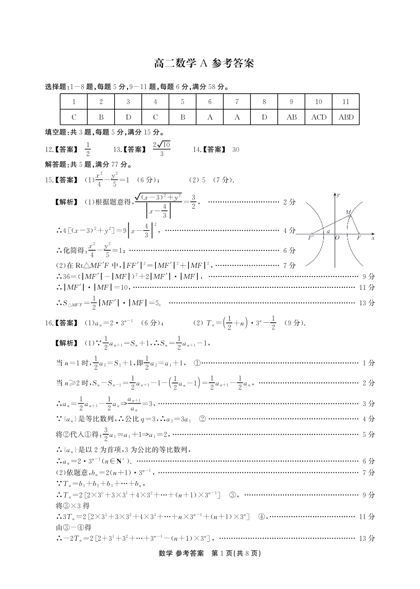 高二数学A卷答案--安徽省鼎尖联考2025-2026学年高二上学期期末过程性学科素质评价