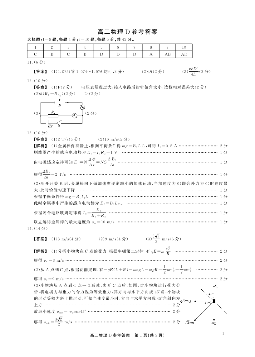 高二物理D卷答案--安徽省鼎尖联考2025-2026学年高二上学期期末过程性学科素质评价
