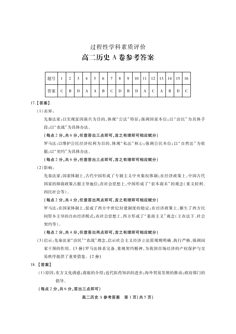 高二历史A答案--安徽省鼎尖联考2025-2026学年高二上学期期末过程性学科素质评价