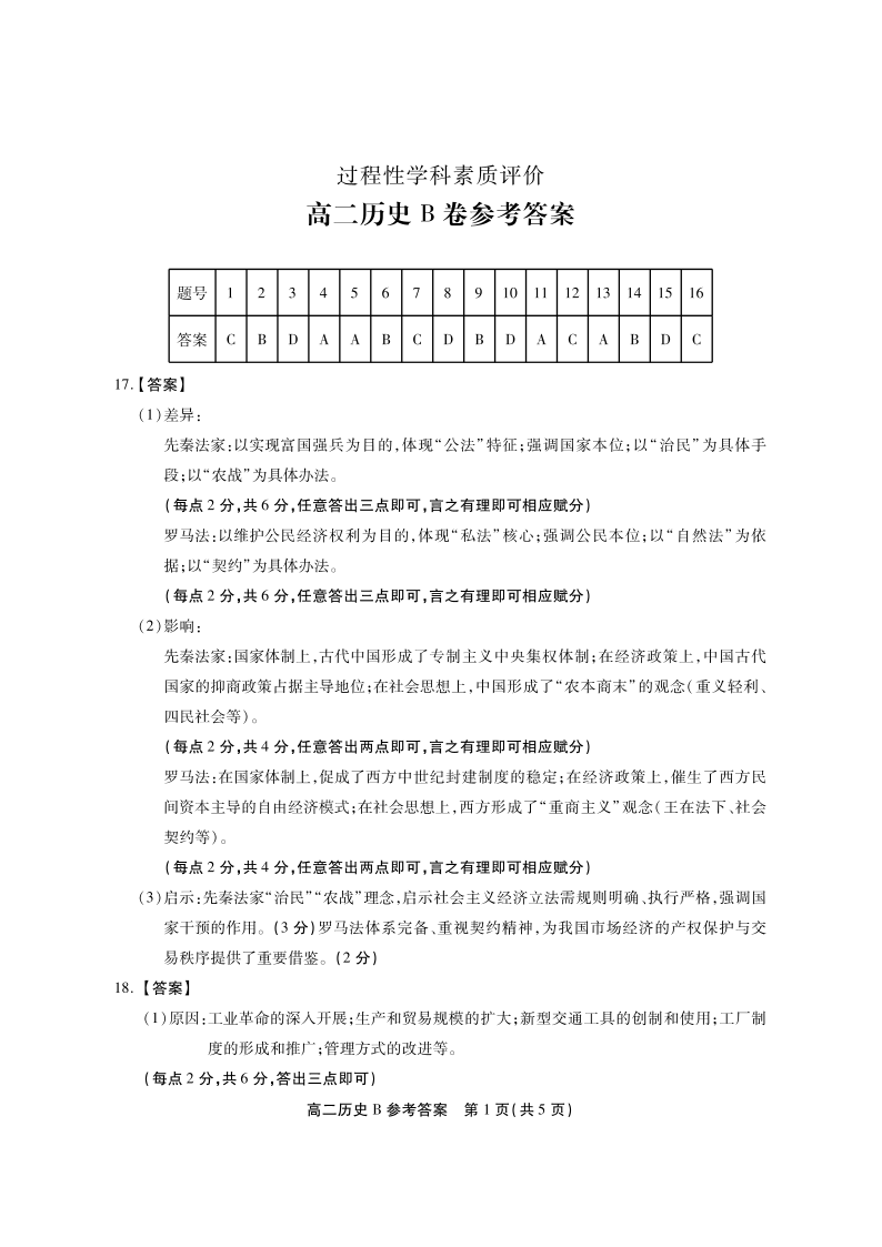高二历史B答案--安徽省鼎尖联考2025-2026学年高二上学期期末过程性学科素质评价