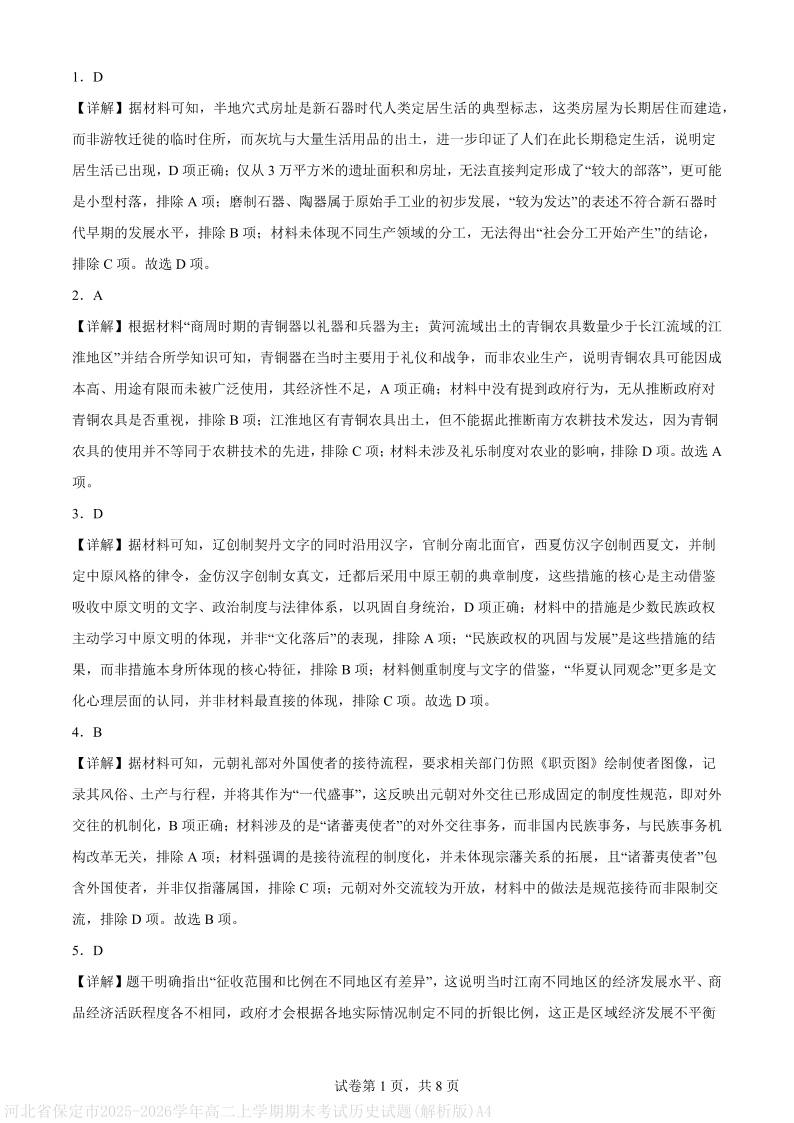 高二历史(解析版)--河北省保定市2025-2026学年高二上学期1月期末考试