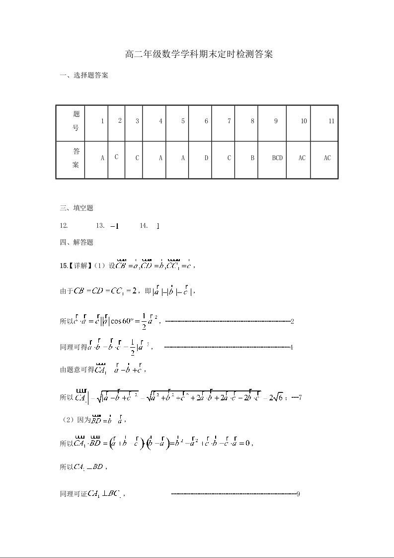 高二数学答案--山东省枣庄市第八中学2025-2026学年高二上学期1月月考