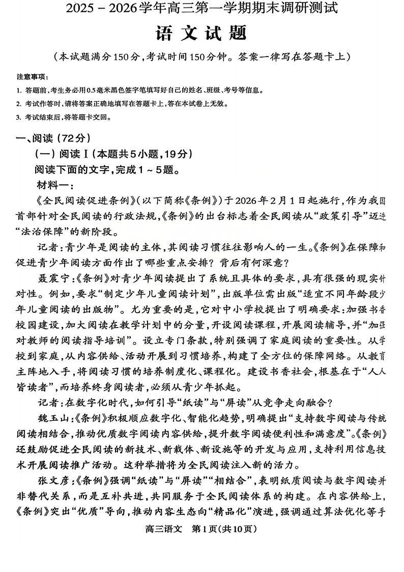 高三语文--山西省吕梁2026届高三上学期1月期末调研