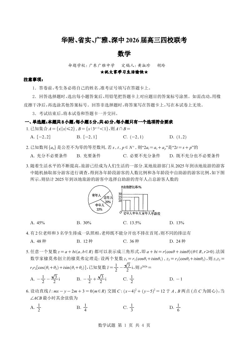 高三数学--广东省华附、省实、广雅、深中2026届高三四校联考1月期末考试数学