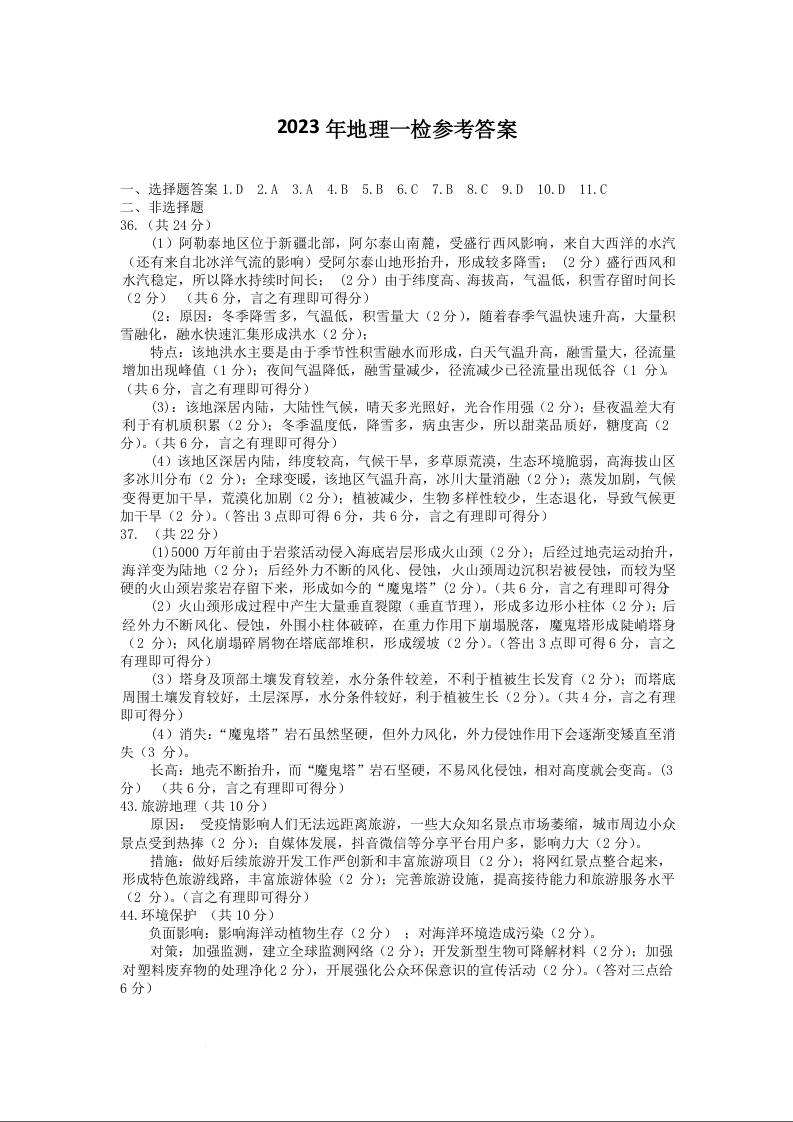 高三文综答案--陕西省宝鸡市2022-2023学年高三上学期高考模拟检测(一)