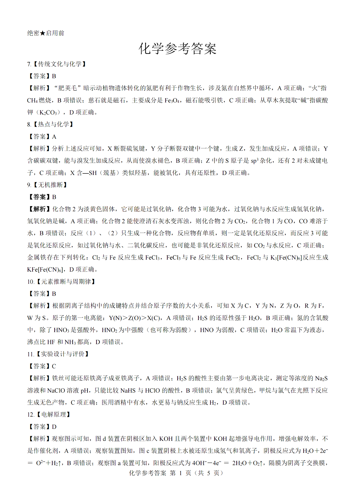 高三理科综合答案--山西省三重教育2022-2023学年高三上学期12月联考