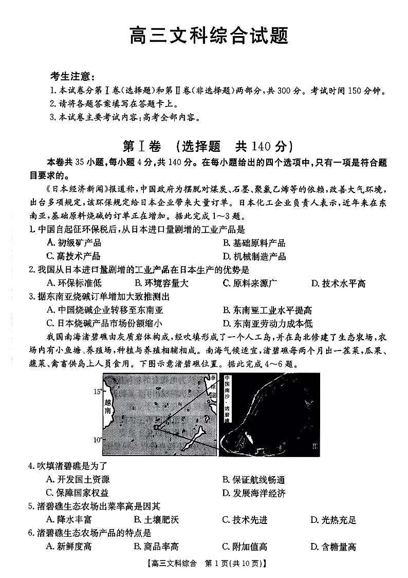 高三文科综合--山西省部分学校2022-2023学年高三上学期12月联考