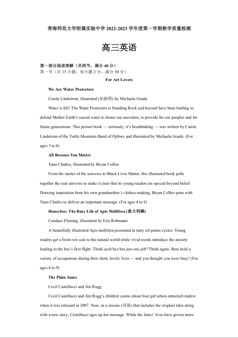 高三英语+答案--青海省西宁市青海师范大学附属实验中学2023高三上学期12月月考