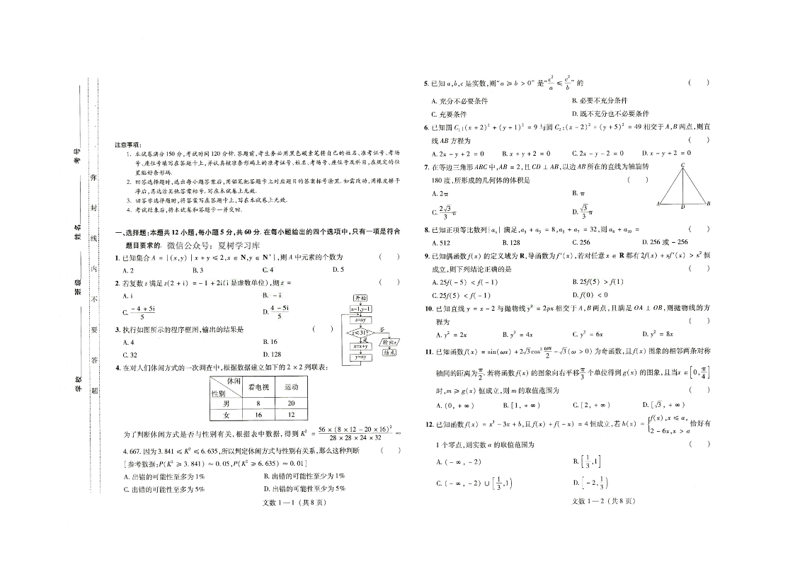 高三文数--青海省西宁市2023高三上学期一模