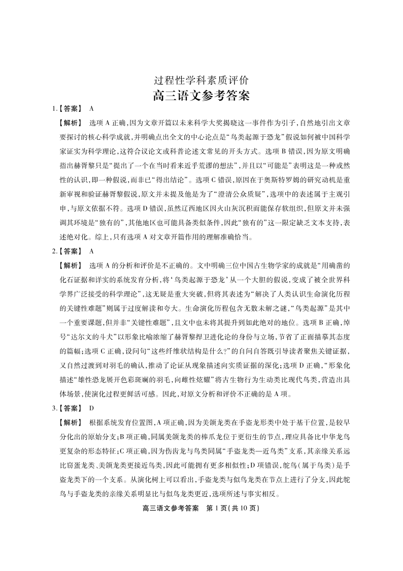 高三语文答案--安徽省鼎尖联考2026届高三上学期期末过程性学科素质评价