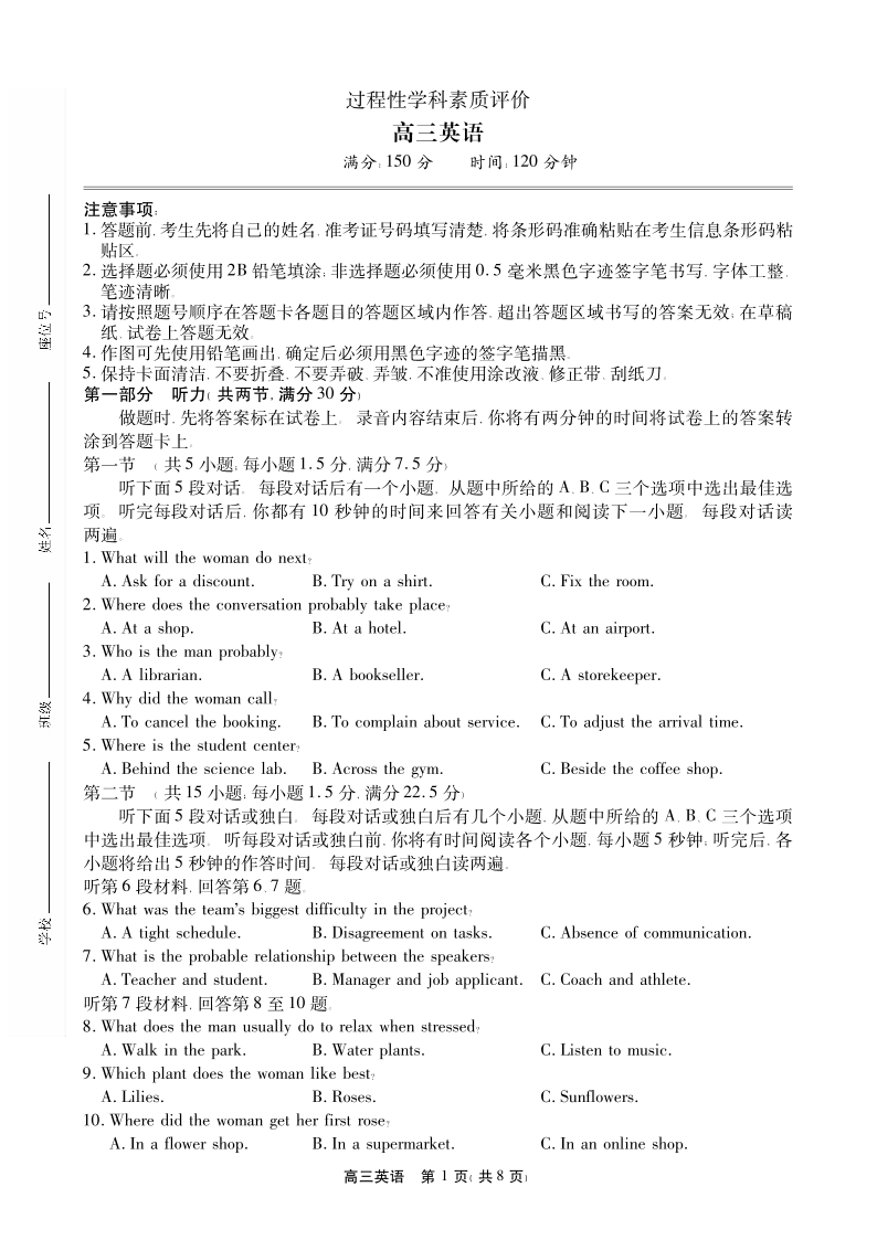 高三英语--安徽省鼎尖联考2026届高三上学期期末过程性学科素质评价