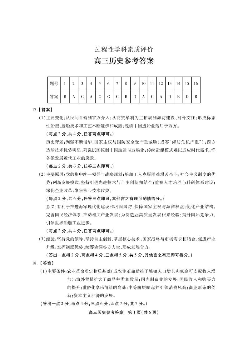 高三历史答案--安徽省鼎尖联考2026届高三上学期期末过程性学科素质评价
