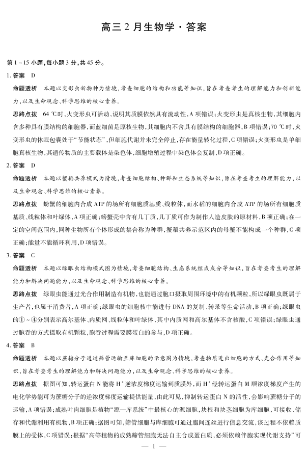 高三生物答案--安徽省毫州市普通高中2026届第一学期高三期末质量检测