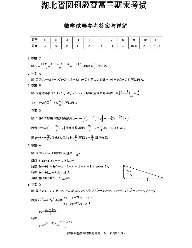 高三数学答案--湖北省2026届高三圆创联盟2月联考