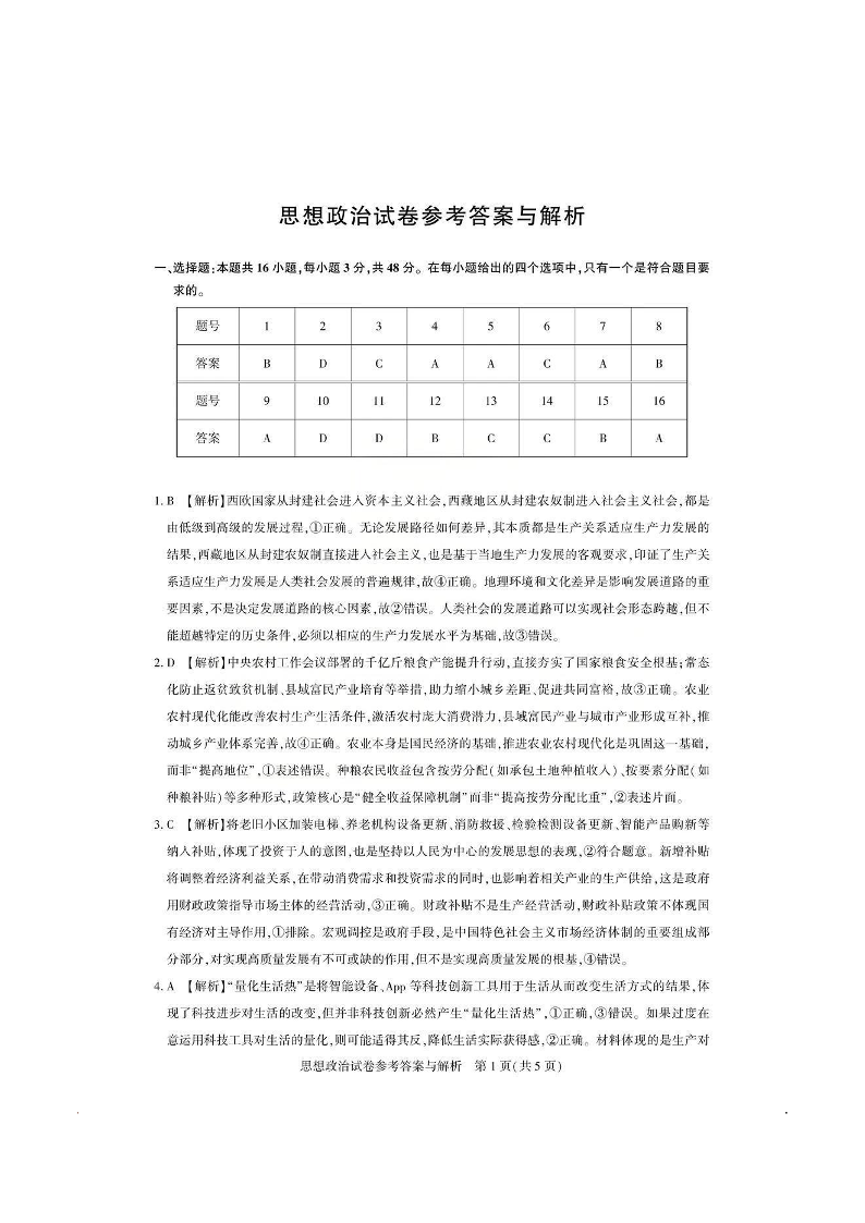 高三政治答案--湖北省2026届高三圆创联盟2月联考