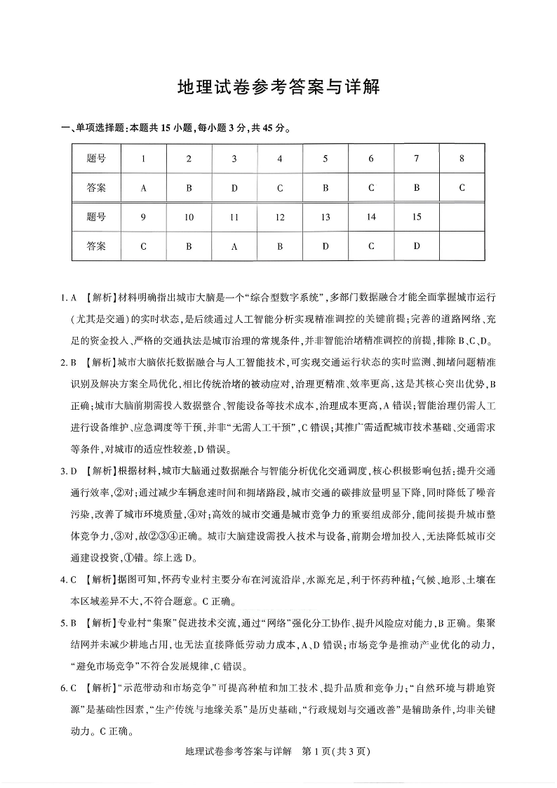 高三地理答案--湖北省2026届高三圆创联盟2月联考