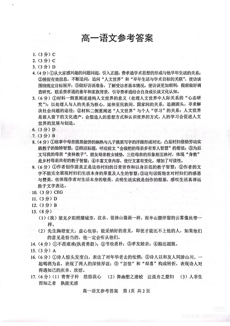 高一语文答案--江苏省苏州市2025-2026学年度高一上学期期末考试