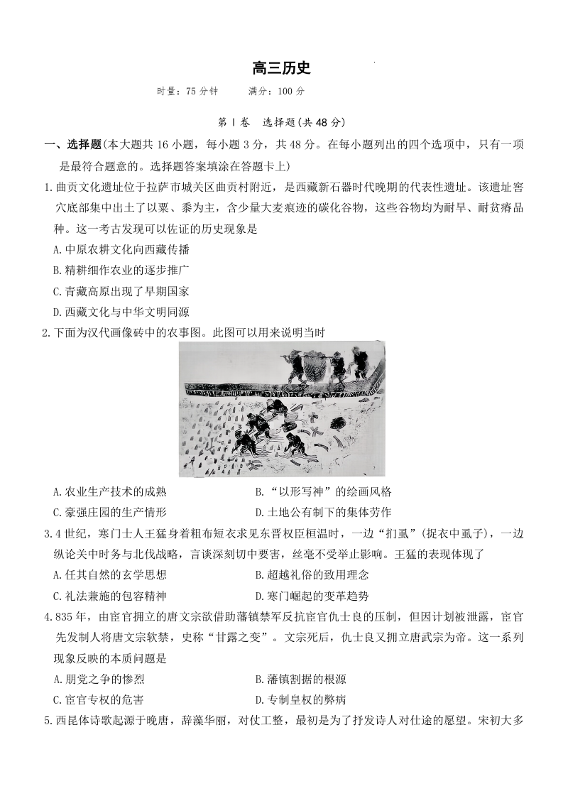 高三历史+答案--湖南省长沙市第一中学2026届高三上学期2月期末