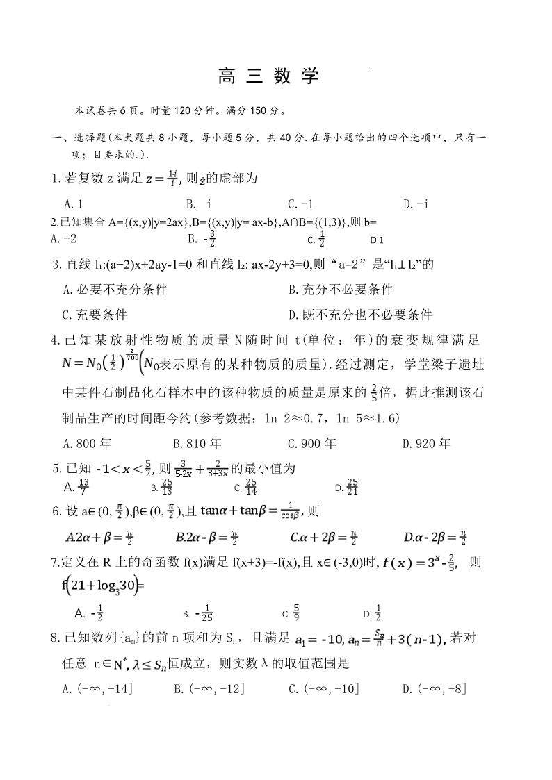 高三数学--湖南省长沙市长郡中学2026 届高三年级月考(六)