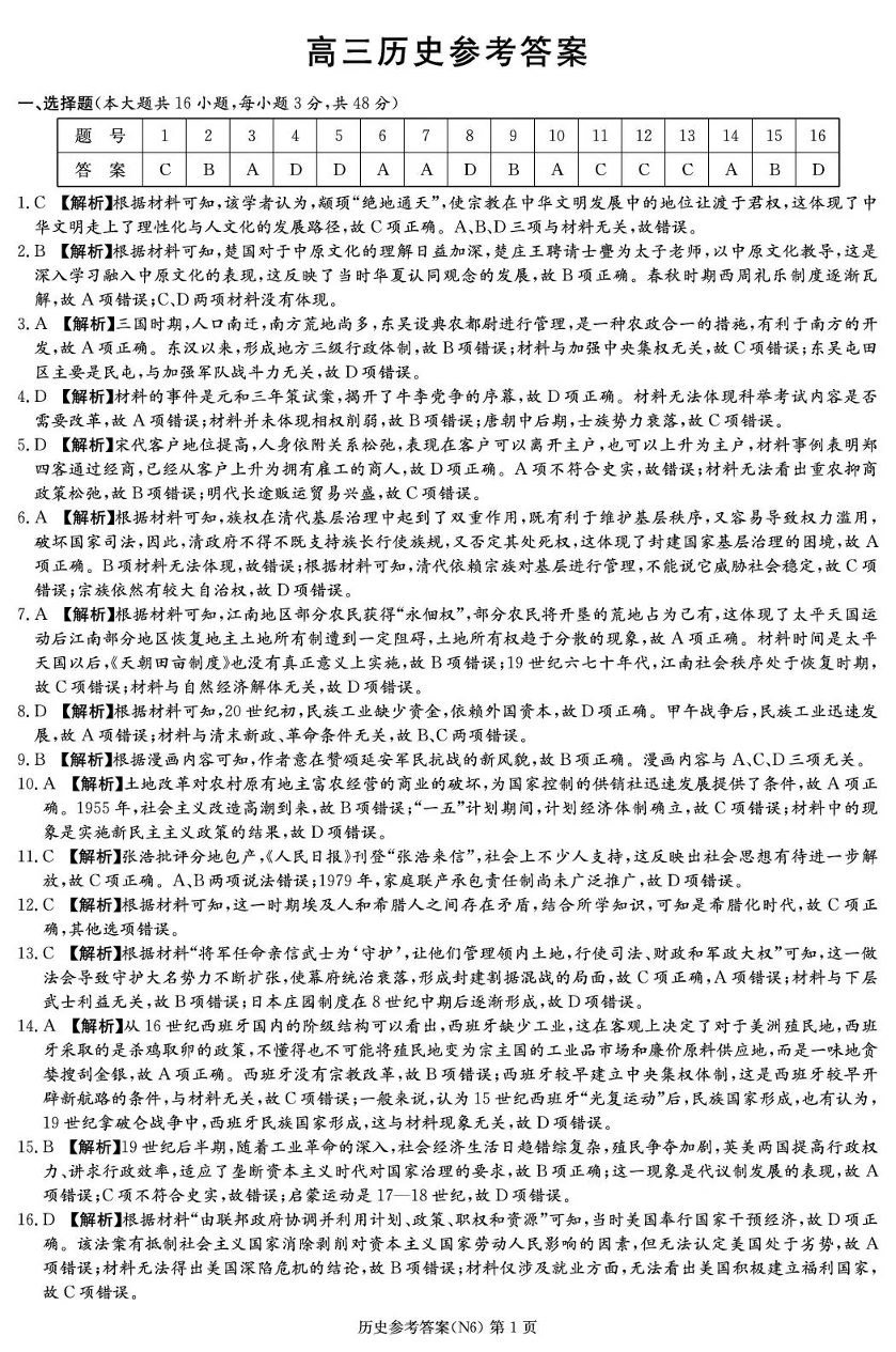 高三历史答案--湖南省长沙市长郡中学2026 届高三年级月考(六)