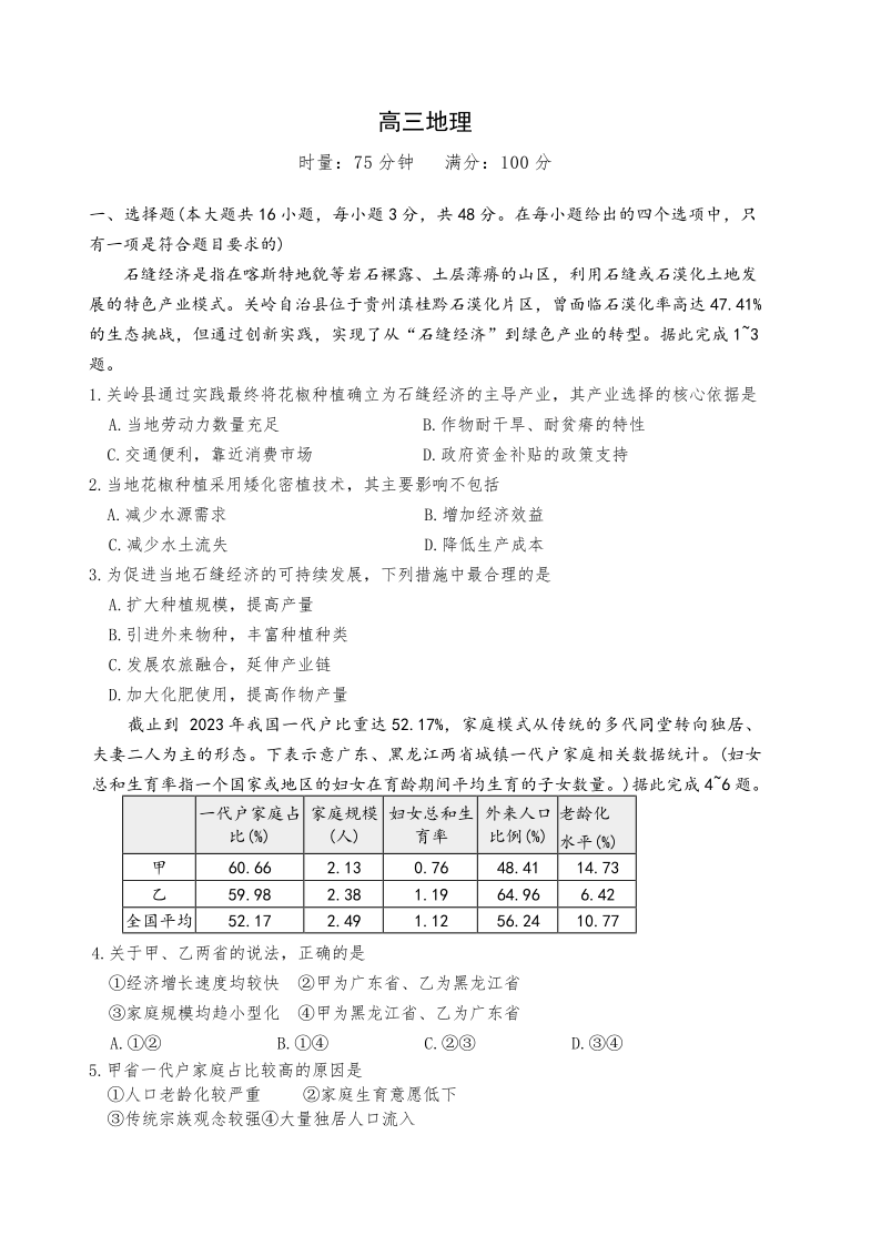 高三地理+答案--湖南省长沙市长郡中学2026 届高三年级月考(六)