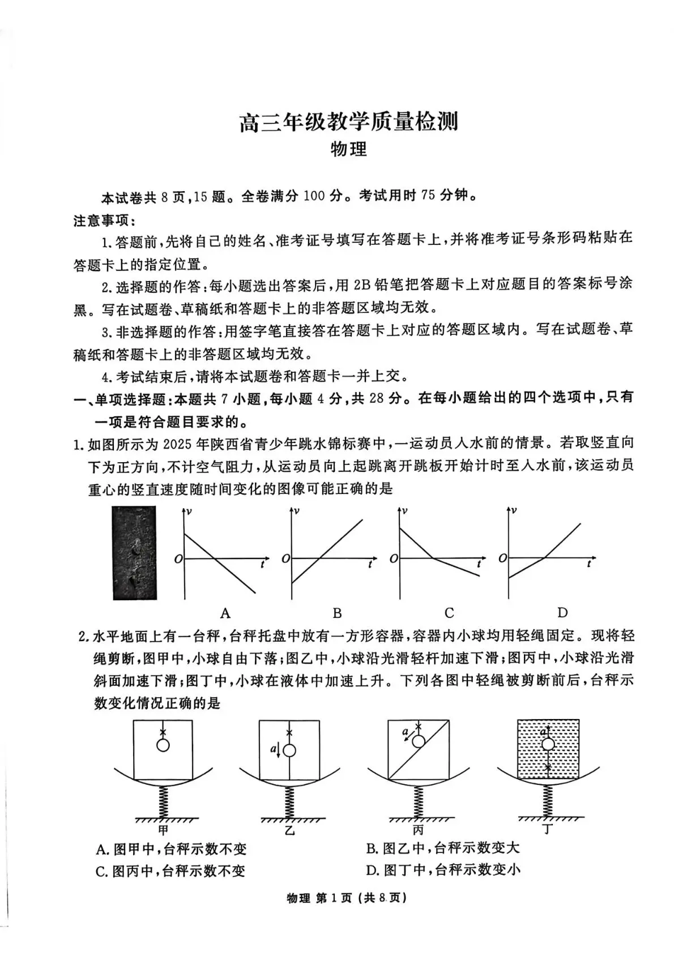 高三物理--陕西省衡水金卷2026届高三上学期2月联考