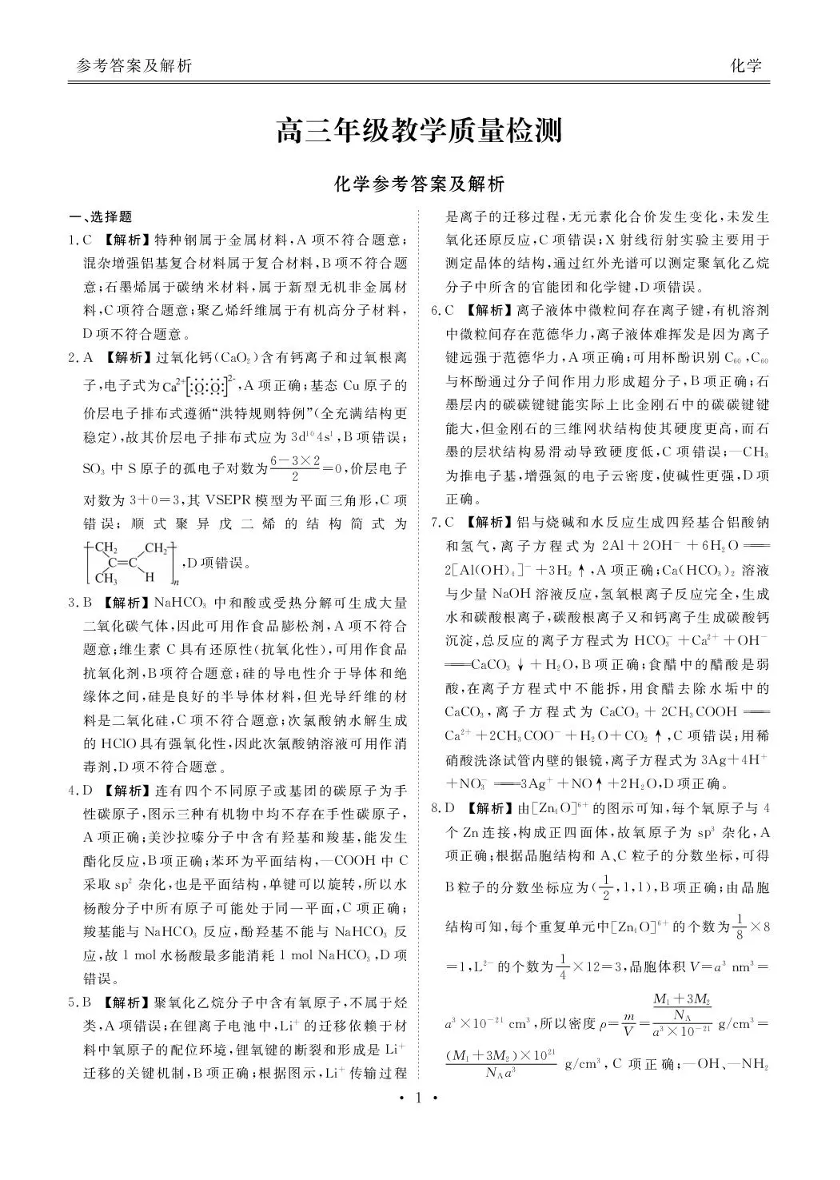 高三化学答案--陕西省衡水金卷2026届高三上学期2月联考