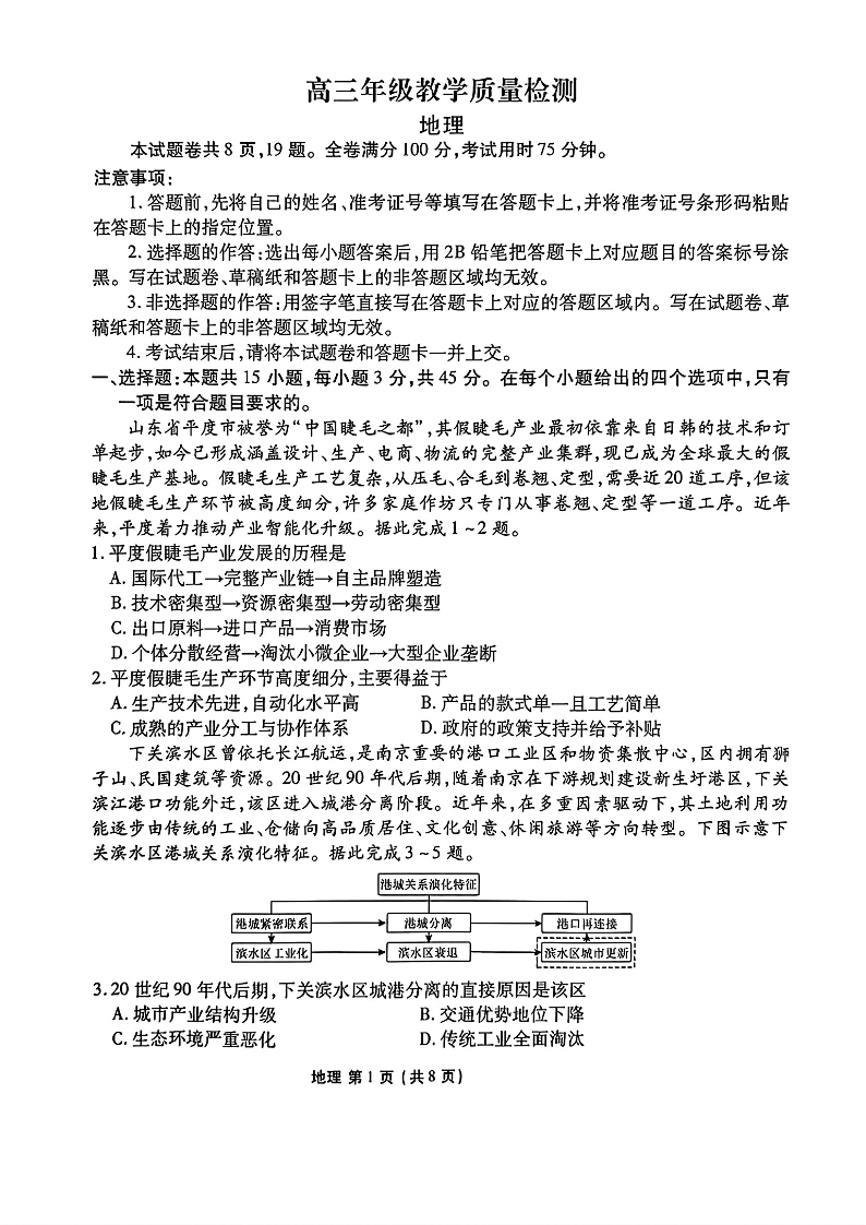 高三地理--陕西省衡水金卷2026届高三上学期2月联考