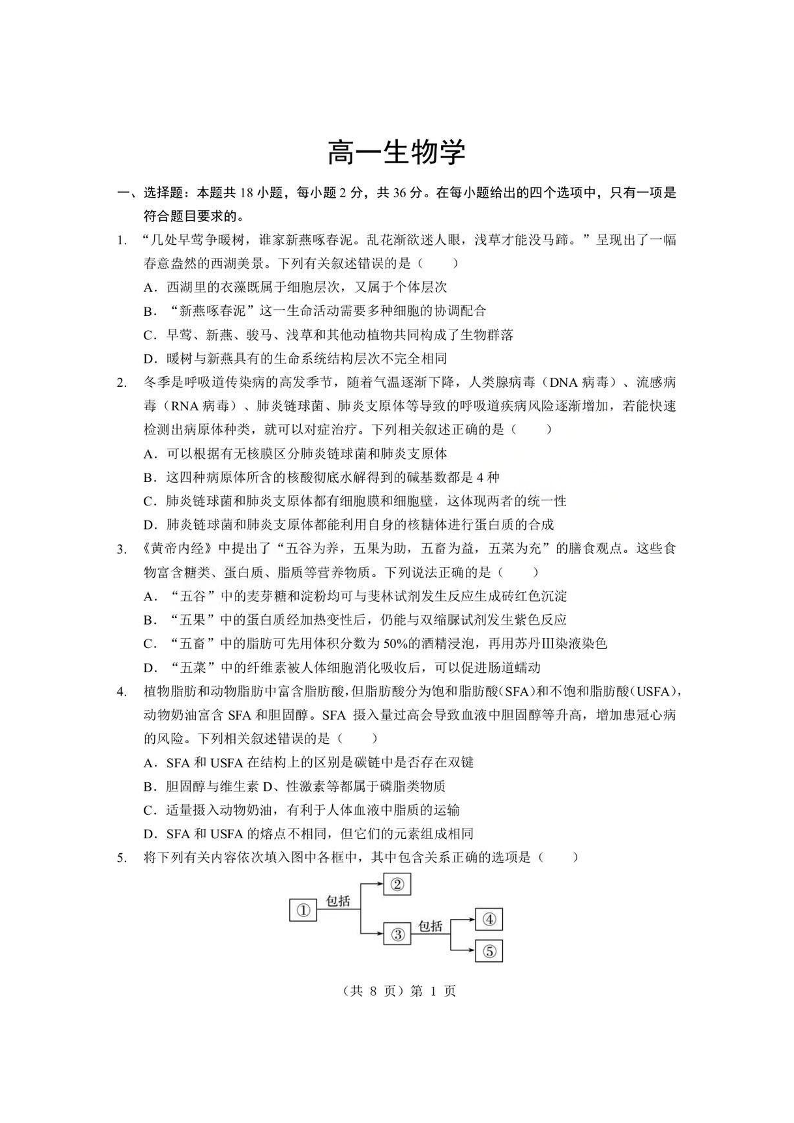 高一生物+答案--湖北省孝感市楚天协作体2025-2026学年度上学期高一年级期末考试