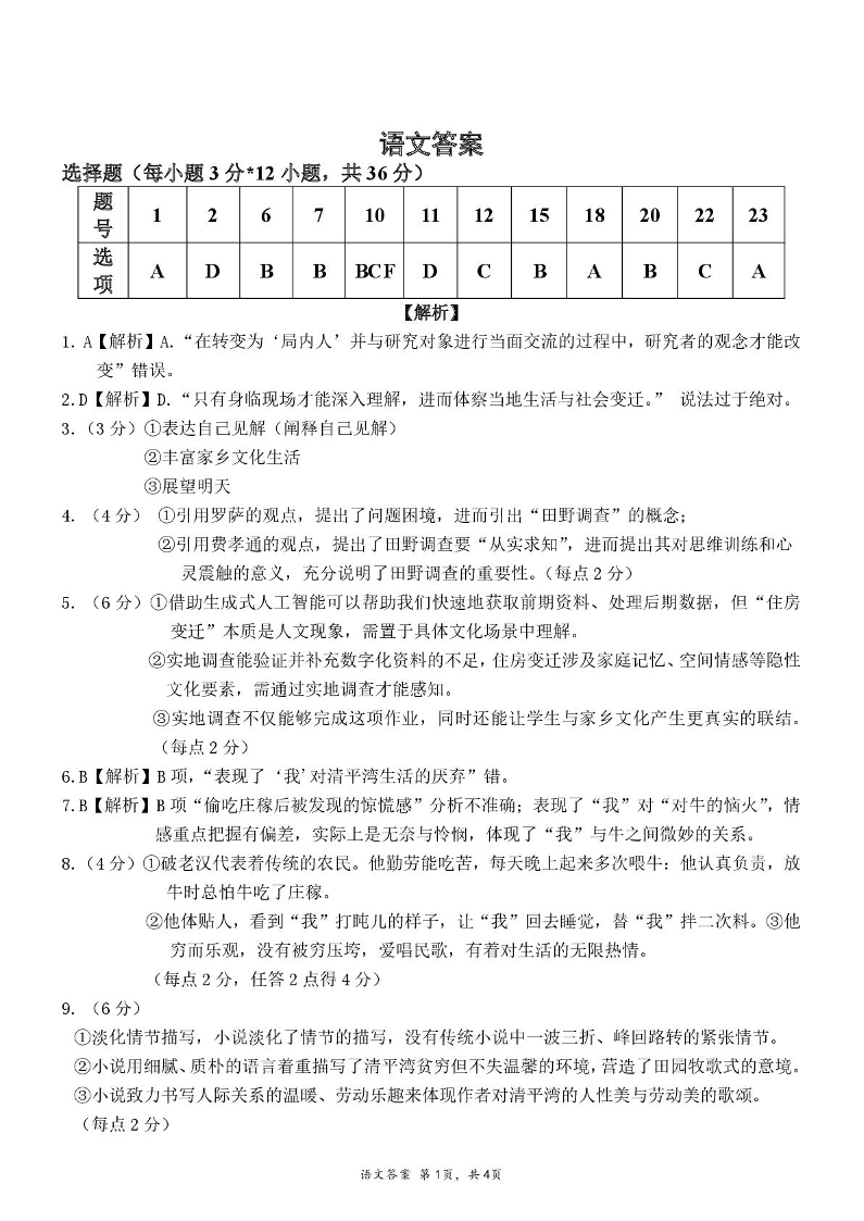 高一语文答案--湖南省常德市沅澧共同体2025-2026学高一上学期期末考试
