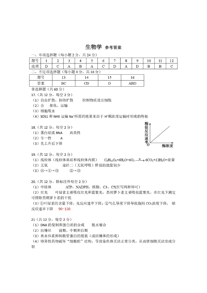 高一生物答案--湖南省常德市沅澧共同体2025-2026学高一上学期期末考试