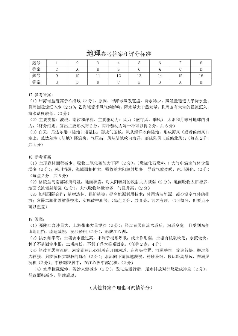 高一地理答案--湖南省常德市沅澧共同体2025-2026学高一上学期期末考试